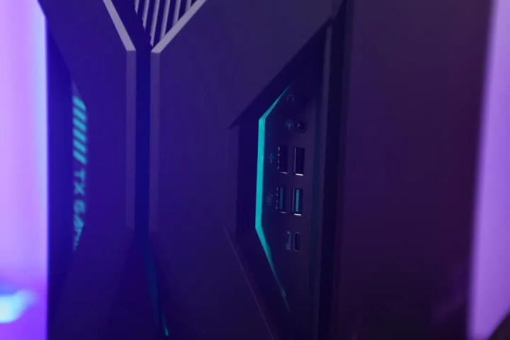▲华硕天选6X台式机的背面除了接口之外,还于上、下分别设计了散热孔。