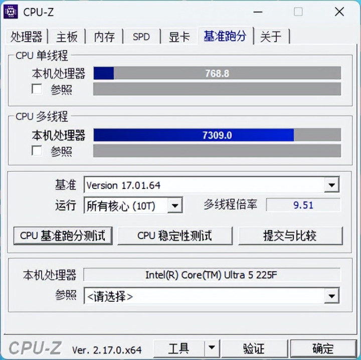 具体来看,在衡量处理器基础运算能力的Chinbench R23测试中,该处理器在单次单线程测试中斩获1960分,多线程测试中更是取得16225分的佳绩,单线程分数彰显了性能核的高频优势,多线程分数则印证了混合架构的协同效率,二者相得益彰,为游戏中的瞬时响应与多任务并行提供了坚实支撑。在CPU-Z bench测试中,其单线程得分达768分,多线程得分7309分,数据表现与Chinbench R23测试一脉相承,进一步佐证了处理器在不同测试场景下的性能稳定性与一致性,无论是单核心主导的轻负载任务,还是多核心协同的重负载场景,均能游刃有余。
