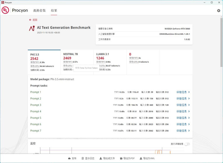 除了生产力创作之外,华硕天选6X还能够较好地应对AIGC的性能需要,我们通过UL Procyon AI TEXT Generation Benchmark进行相关测试,可以看到这台整机在LLAMA 3.1模型测试中能够达到1246分、在MISTRAL 7B模型测试中能够达到2469,对于需要尝试一下AIGC的玩家而言,华硕天选6X也能帮你忙。
