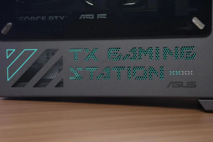 ▲华硕天选6X台式机正面采用对称设计,丰富的格栅加上明显的棱角使得它具备不错的设计感。